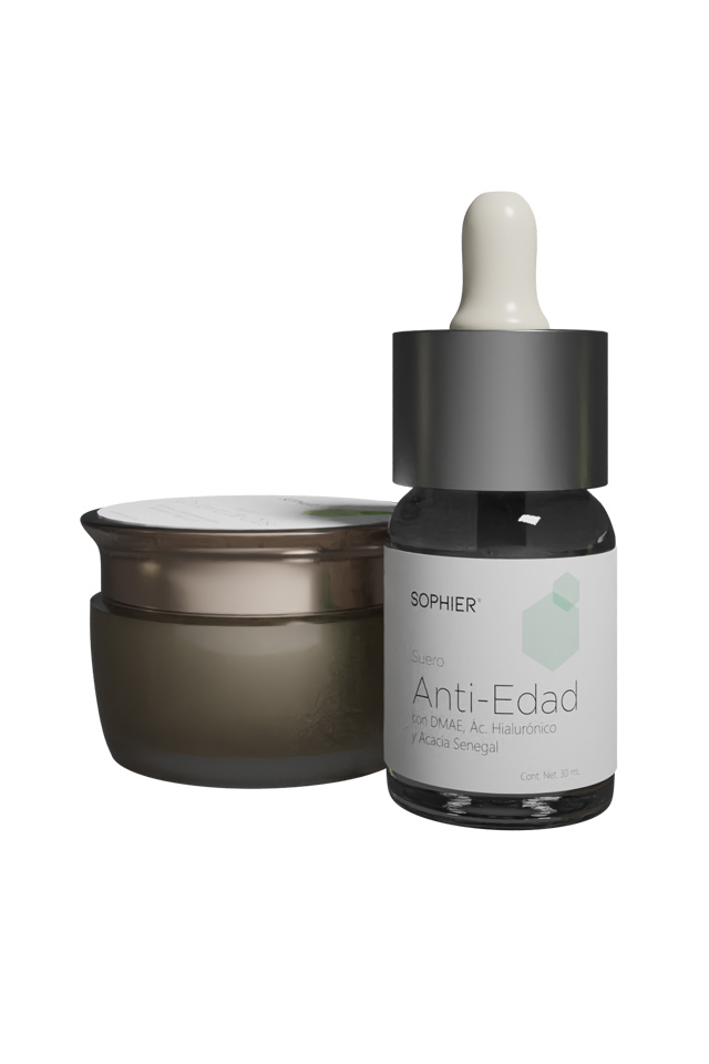 Tratamiento básico para prevenir y corregir líneas de expresión en rostro, contorno de ojos y cuello. Usando la combinación perfecta de: Suero Antiedad + Suero Contorno de ojos, se obtiene una piel libre de líneas de expresión, usando diariamente estaremos aumentando la elasticidad de de la piel y brindando una piel más joven y sana.
