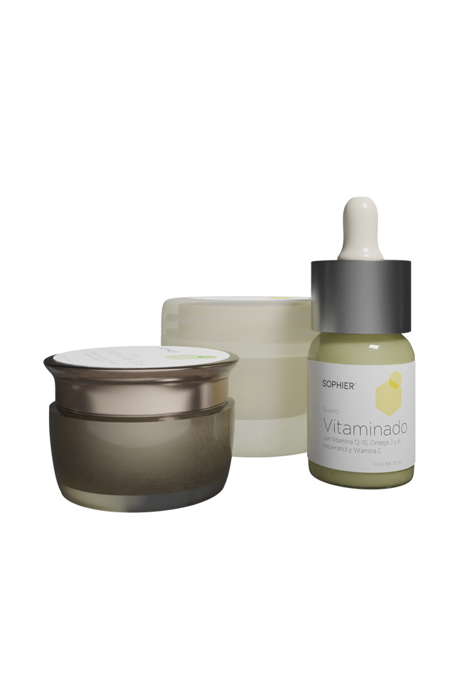 Este Kit reduce las líneas de expresión, previene la aparición de líneas de expresión con la regeneración de estructuras de soporte de la piel, generando una piel, la formulación de cada uno trabaja en sinergia para obtener una piel hidratada, libre de líneas de expresión y nutrición de adentro hacia afuera.