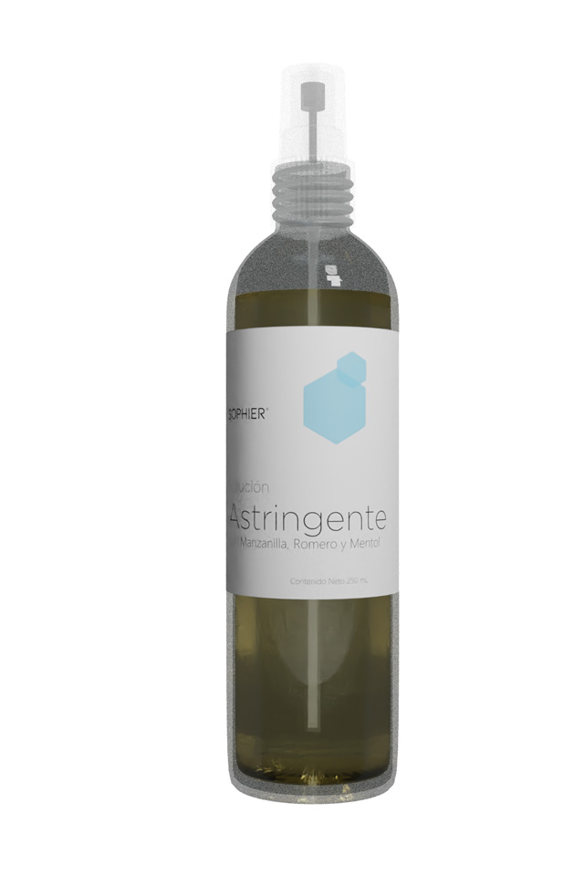 Solución hidro-alcohólica refrescante que desengrasa, purifica y disminuye los poros de la piel. Evita la acumulación de impurezas producidas por la contaminación y agresores asociados al estilo de vida diaria. Elimina el exceso de sebo sin secar ni irritar la piel del rostro. Auxiliar en la limpieza facial, evitando el crecimiento de microorganismos en la piel y mantener el equilibrio sebáceo con: la combinación y proporción perfecta de los aditivos que en conjunto eliminan progresivamente todos los contaminantes de la piel, elimina partículas de difícil acceso así como de aquellas en las que no es posible disolver por otros agentes: Extracto de Romero, Extracto de Manzanilla, Urea, Etanol, Mentol a concentraciones dermatológicas que restablece el pH y controlan el equilibrio cutáneo.